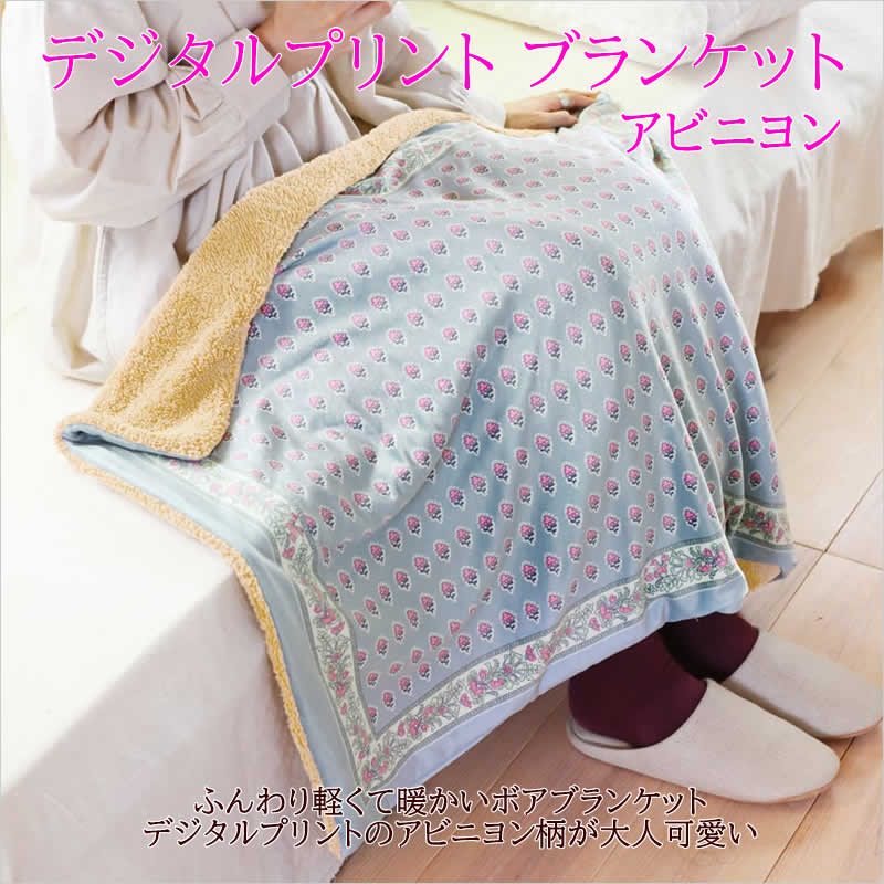 デジタルプリントブランケット アビニヨン ふわふわ ボア おしゃれ 暖かい ひざ掛け 肩掛け 腰巻き 70x100cm 一人用 アジアン雑貨