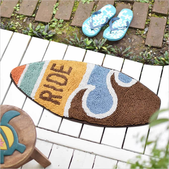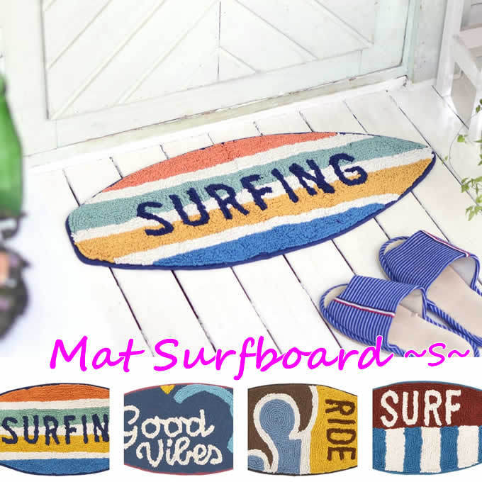 | お部屋に敷くだけでビーチスタイルの雰囲気になる、サーフボードマット。 ラインサーフィン、グッドレインボー、ライド、ボーダーハーフのかっこいい4種類です。 キュートなファブリックはお部屋を明るく、お洒落に演出します。 バスマットやトイレマットとしてはもちろん、インテリアマットとして敷けばお部屋のアクセントになります。 |