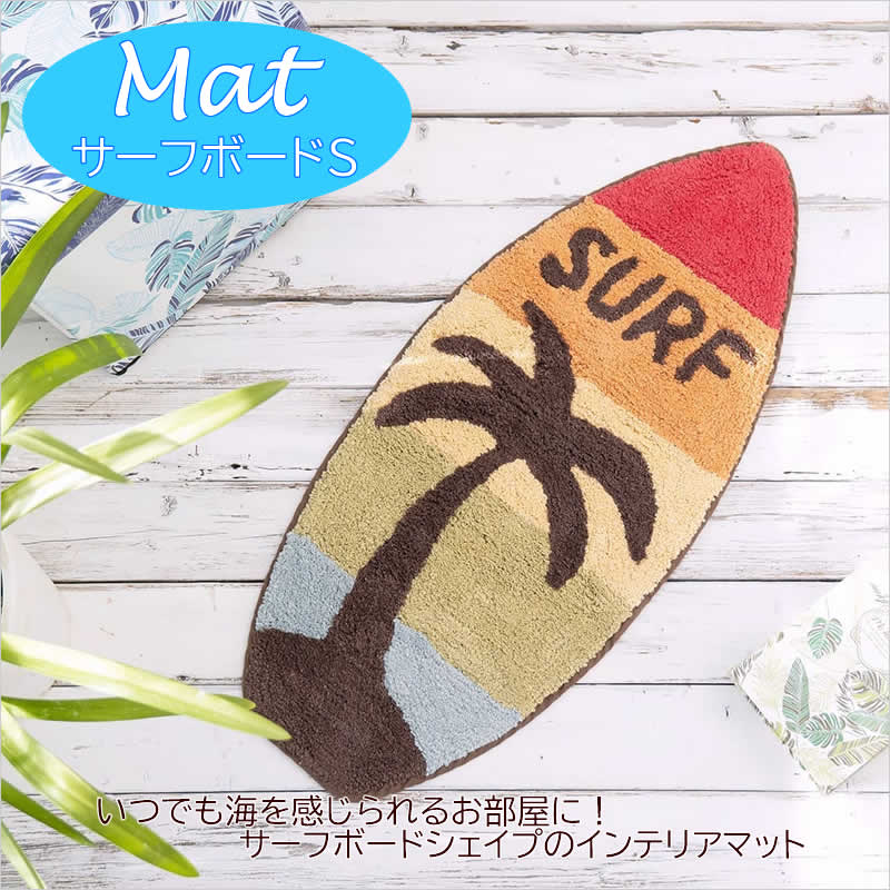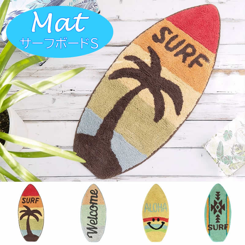 マット サーフボード S ビーチ 海 ハワイアン 玄関マット キッチンマット バスマット サーフ スマイル ビーチ マリン 海 ハワイアン雑貨 アジアン雑貨 西海岸 波