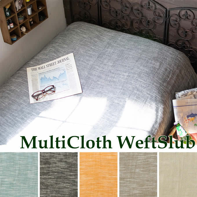 | でこぼこしたスラブ生地がナチュラルで可愛いマルチクロス。 スラブ生地とは、ゆるく撚りをかけたスラブ糸を編んで織られた生地です。 どことなく癒される、優しい風合いが魅力です。 カラーは「ブルーグリーン、ブラック、サフラン、ブラウン、ナチュラル」の5色です。 ベーシックなカラーは飽きずに長くお使いいただけます。 素材は、綿100%。シングルサイズでベッドカバーにちょうど良いサイズです。 ソファーカバーやテーブルクロスとしてもお使いいただけ、 キャンプやビーチなど、野外でラグのように敷いても素敵です。 |
