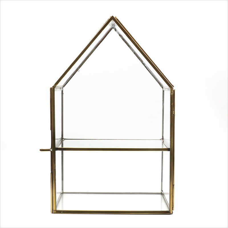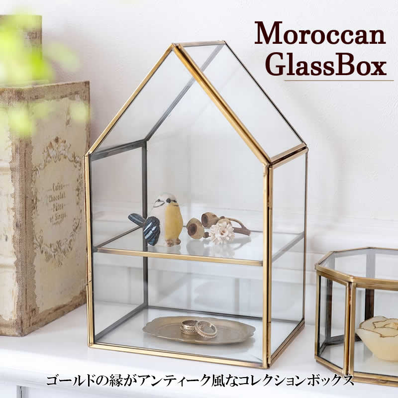 モロッカン ガラス2段コレクションBOX ホーム 収納 小物入れ アンティーク調 レトロ コレクションケース 飾る ゴールド 金 アジアン雑貨 インテリア
