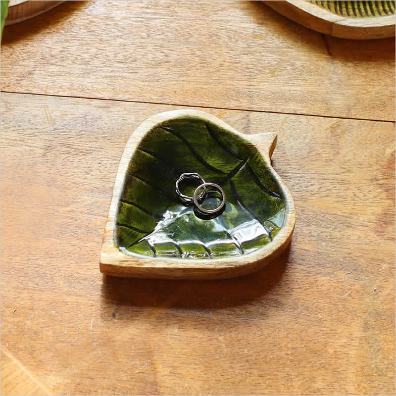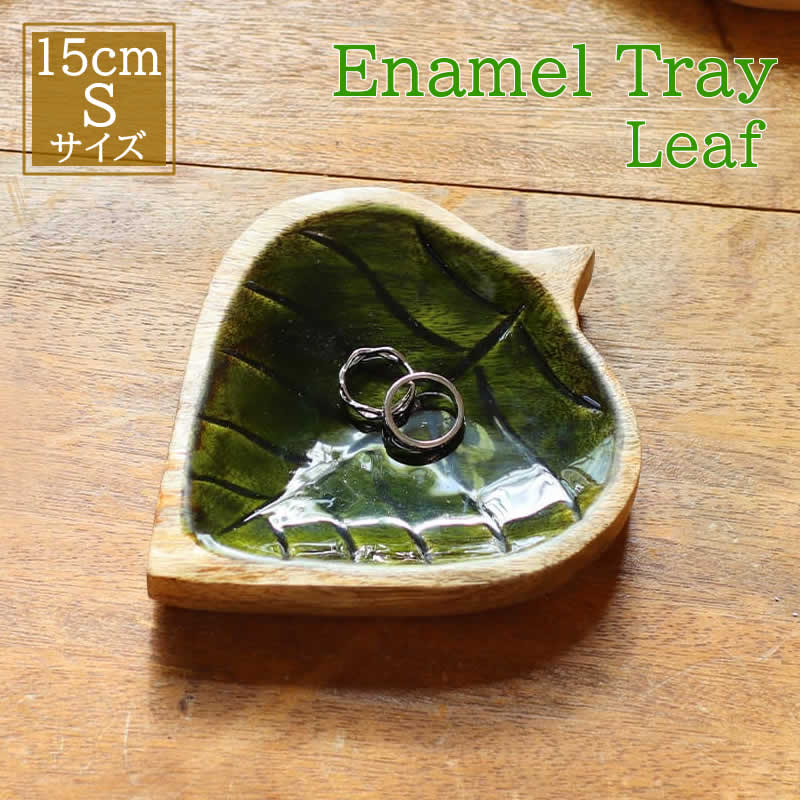 エナメルトレイ リーフ S デスクトレー 小物入れ 葉 木 木製 収納 キートレイ アクセサリートレイ インテリア ハワイアン雑貨 アジアン雑貨