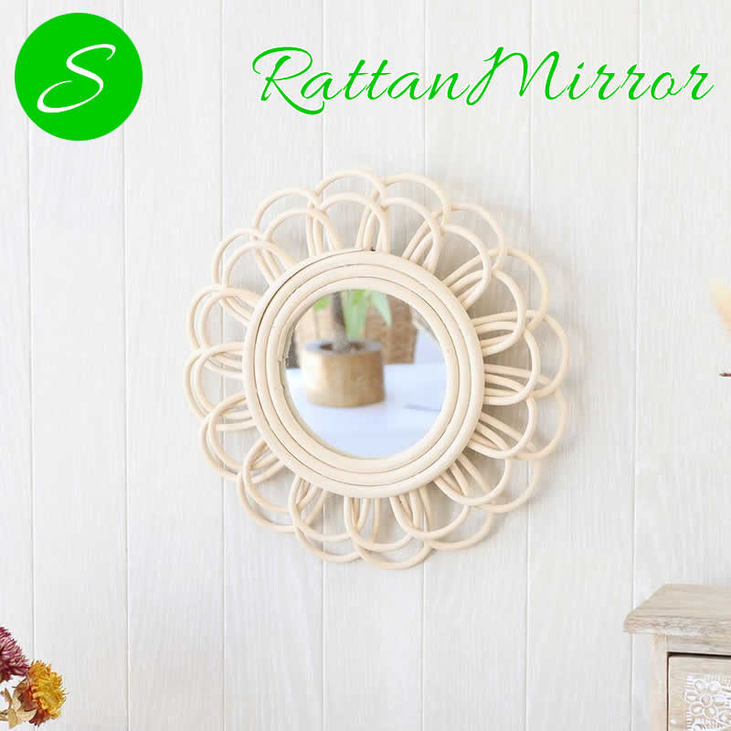 | 飾るだけでお部屋がぐっとオシャレになるラタン壁掛けミラー。 フラワーモチーフがエレガントなデザインです。 Sサイズは直径約25cm。コンパクトなので省スペースに飾れます。 まるでリゾートホテルに飾ってあるような趣を感じさせます。 おしゃれなミラーはウオールデコレーションにぴったりです。 天然素材を使用しているのでナチュラルテイストやアジアン、北欧など、様々なインテリアに馴染みます。 リビングはもちろん、玄関や洗面台に飾るのもおススメです。 アジアンリゾートな雰囲気にしてくれる天然素材で作られたミラーシリーズです。 |