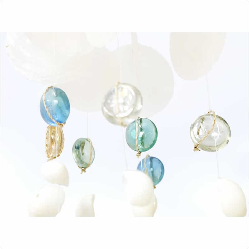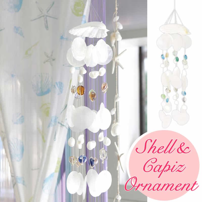 涼しげなカピス貝やシェル、ガラスを組み合わせたオーナメント。