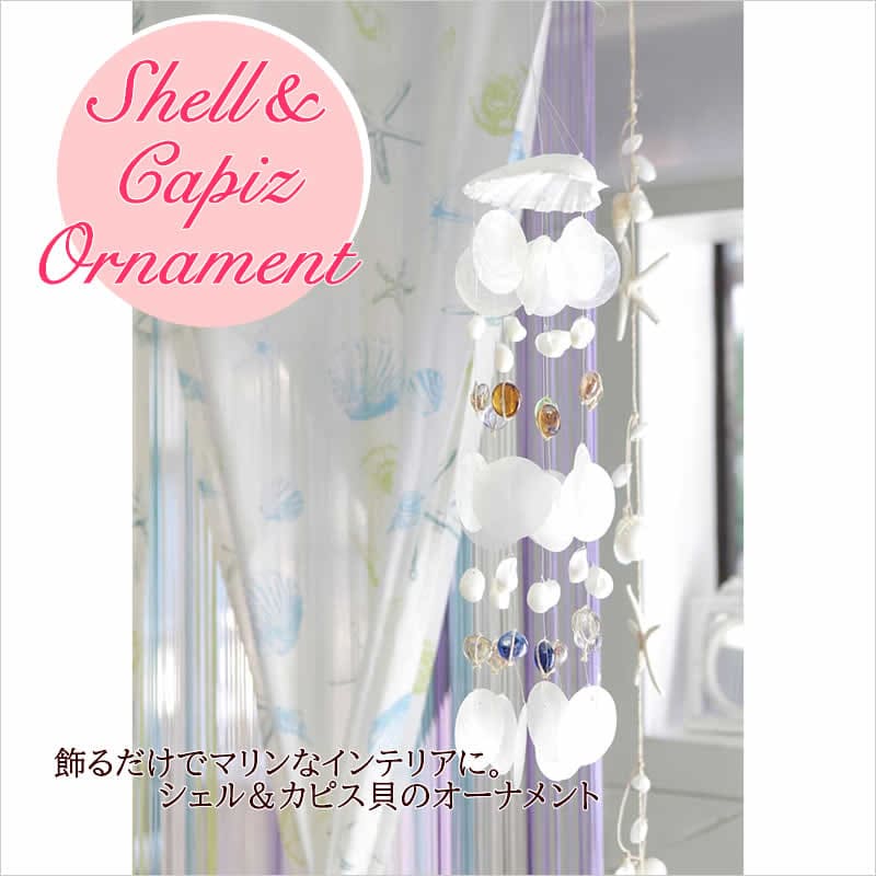 ハワイアン雑貨 シェル&カピス オーナメント 吊るし ガーランド アジアン雑貨 インテリア 貝 シェル 貝殻 カピス貝 飾り ディスプレイ 海