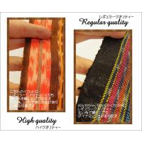 | こちらのイカットは写真左側の「ハイクオリティー」です。 細い糸を織り上げた、上品でしなやかな印象が特徴的のイカットです。 細い糸は太い糸を織る倍の時間がかかります。 長い時間をかけ、一枚一枚丁寧に織り上げています。 | ||