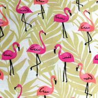 ベージュのヤシの葉のベースに並ぶ愛らしいフラミンゴ! |