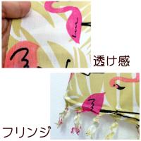 レーヨンのしなやかな肌触りと体の線がきれいに見える透け感です。 端は手ほどきで「フリンジ」仕様になっています。 |