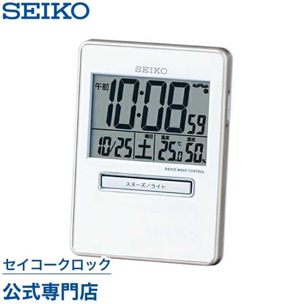 目覚まし時計 セイコー SEIKO 置き時計 SQ699W トラベラ 携帯用 電波時計 ライト付き デジタル カレンダー 温度計 湿度計 オシャレ おしゃれ 記念品 延長保証