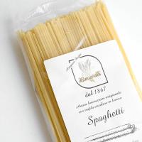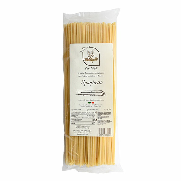 スパゲッティは、日本の一般的なスパゲッティよりもやや太めですが、その分、ブロンズ鋳型による製法と、小麦の美味しさを堪能できます。どんな具材にも合う一番クラシカルなタイプのパスタは、トマトソースやシーフードと和えたり、ミートソースやクリームソースなど、定番パスタとしてお楽しみいただけます。