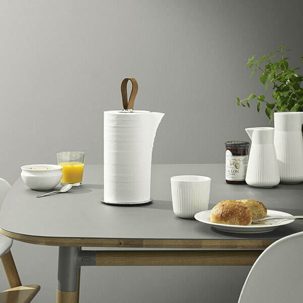 クールなキッチン用品をお探しの方にピッタリな、キッチンペーパーホルダー。高級インテアのような、トップのレザーと高品質なステンレス仕上げのコンビネーションが実に美しい、北欧/デンマークならではのグッドデザインです。重さは約269gと軽量。しかも、レザー部分を持てば、キッチンからテーブルへの移動も楽々です。