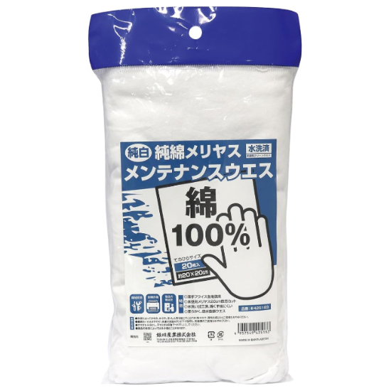メンテナンスウエス 20×20cm 20枚入 綿100% 純綿メリヤス 好川産業
