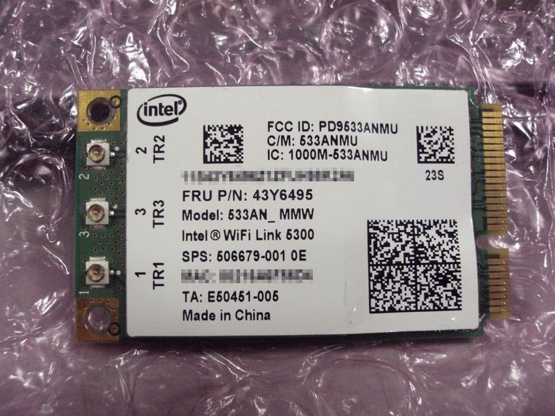 中古lenovo(IBM)専用無線LANカード Intel Wi-Fi Link5300 FRU:43Y6495