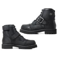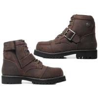 | 甲部のスタッズ付きシフトガードとSIERRA DESIGNSオリジナルバックルを使用したシングルベルトがデザインポイントとなる7HOLE BOOTS。 スライダー(引き手)による傷などを保護するカバー付きインサイドファスナーで着脱しやすく、足のつま先を保護するスチールトゥキャップを搭載したリアルバイカーにも対応できる本格的な作りとなっています。 ヴィンテージ感を演出するため、あえてツヤ無しの牛革(本革)を採用。 |