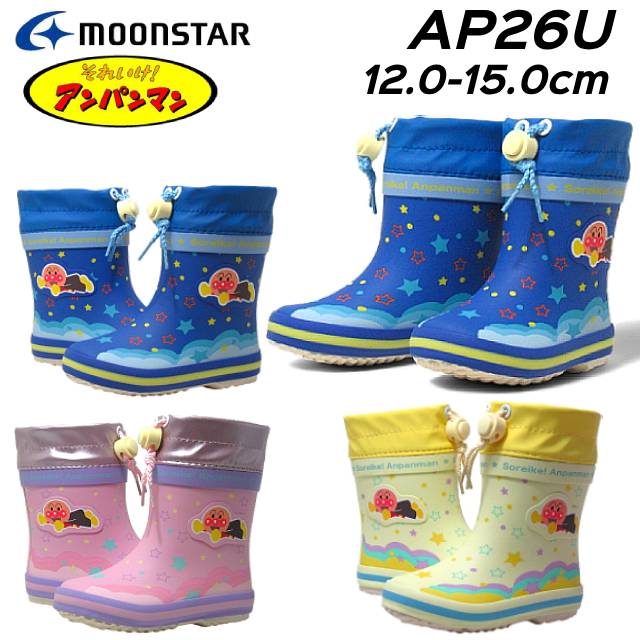 | BB AP26U 大人気「アンパンマン」のベビー用ラバーブーツです。星空を飛ぶアンパンマンがポイントのデザインです。履口に付いているコードストッパーで紐の絞りを調整することにより、雨雪が靴内に浸入しにくくなります。通園やおでかけにも活躍する一足です。重さは13.0cmで片足約150gです。 |