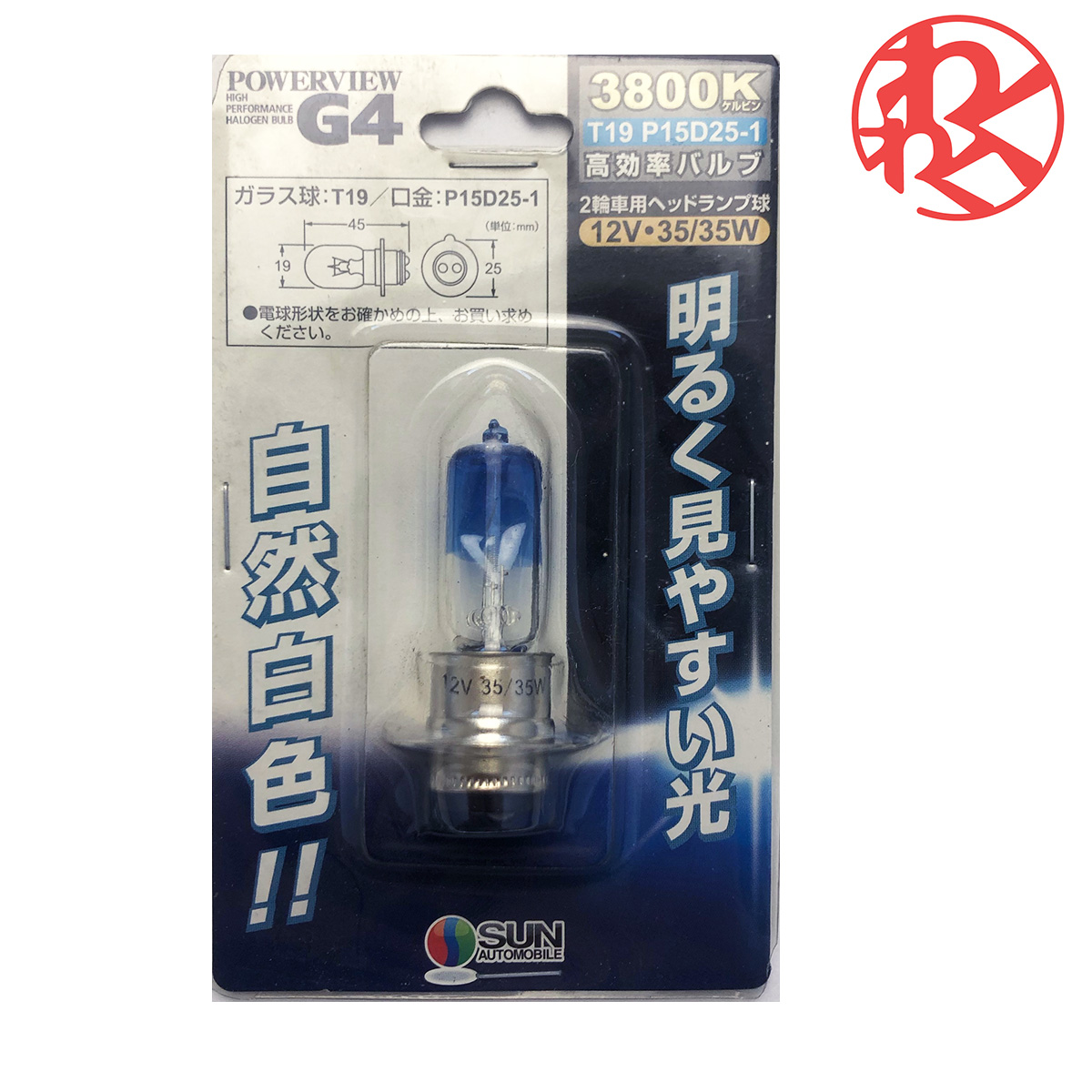 【在庫処分】PowerView G4 サン自動車工業 高効率ハロゲンバルブ PV08001 T19 P15D25-1 ナチュラルホワイト 3800K