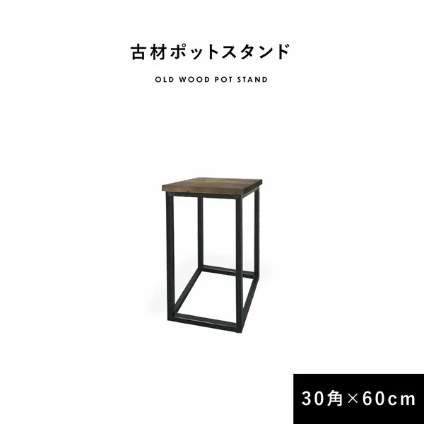 ポットスタンド 幅30cm角 高さ60cm 花台 コンソールテーブル 天然木 古材 木製 無垢材 四角 シンプル ブルックリンスタイル アイアン カフェ 北欧 海外 おしゃれ
