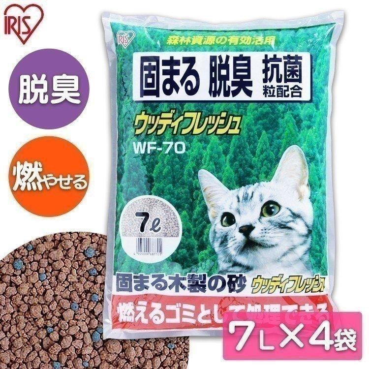 猫砂 木 猫トイレ 燃えるゴミ ネコ砂 脱臭 抗菌 固まる ベントナイト 木砂 アイリスオーヤマ 木の猫砂 ウッディフレッシュ 7L×4袋 WF-70