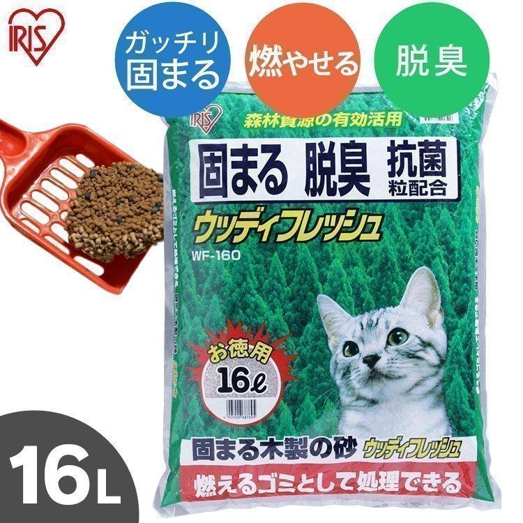 猫砂 木 飛び散り防止 猫 トイレ 燃えるゴミ ネコ砂 脱臭 抗菌 固まる ベントナイト アイリスオーヤマ 木 ウッディフレッシュ 16L WF-160