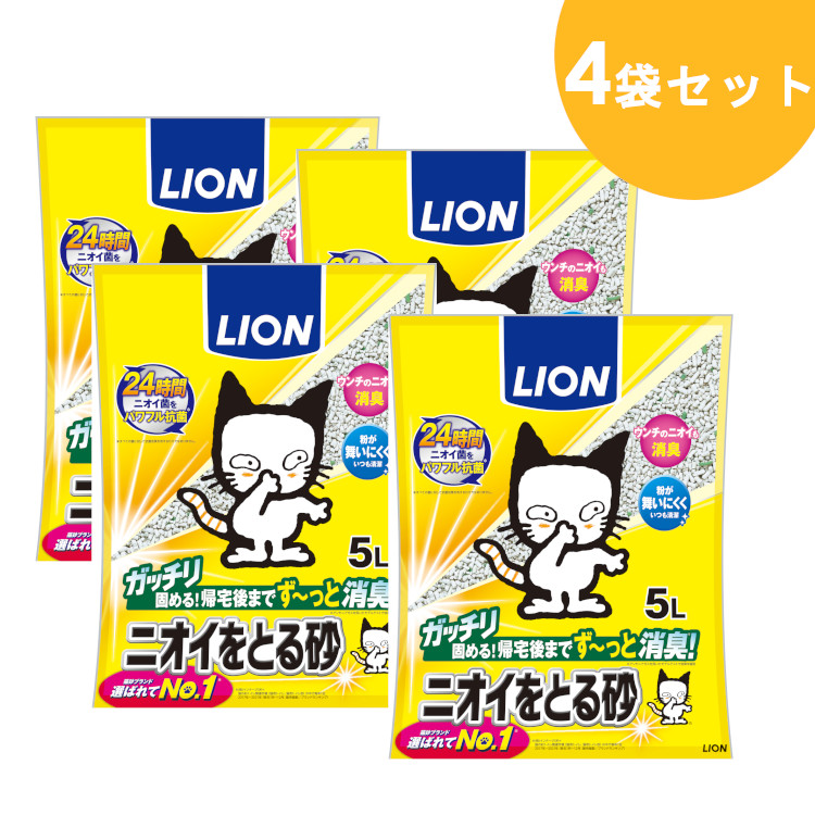 猫砂 ライオン 鉱物系 飛び散り防止 固まる 抗菌 消臭 猫用 猫 トイレ トイレ用品 ねこ砂 ネコ トイレ LION ニオイを取る砂 5L×4袋