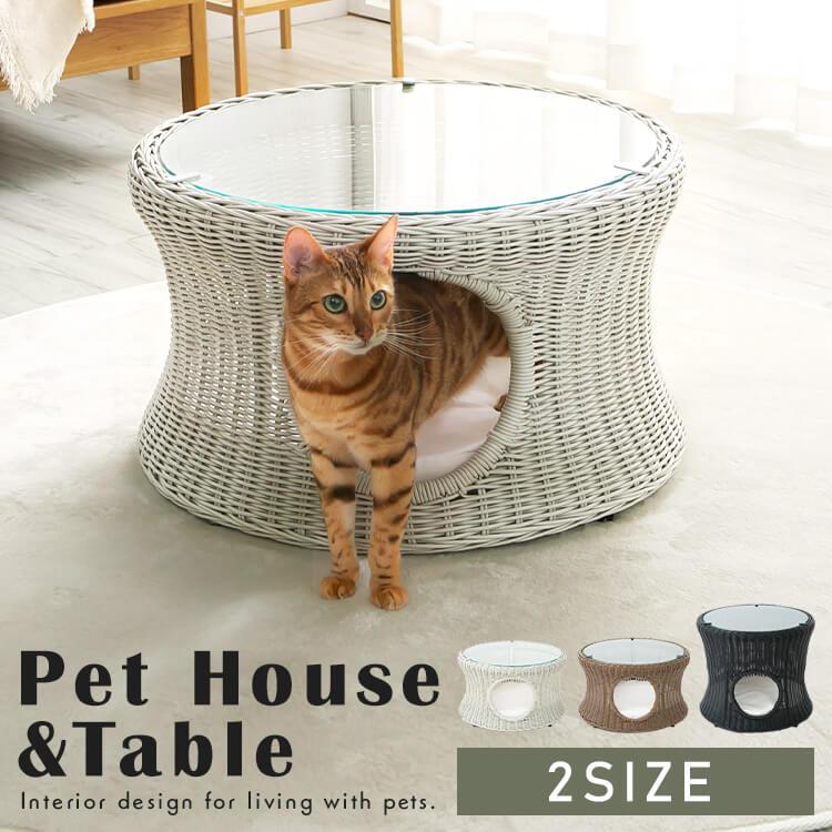 (検索用:ペットベッド ペットハウス テーブル ローテーブル サイドテーブル インテリアテーブル ラタン風 ベッド おしゃれ シンプル 完成品 犬 猫 ネコ ペット)