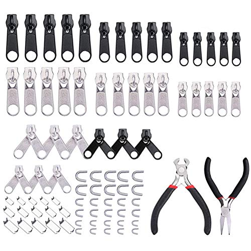 ジッパー ファスナー修理キット 修理用ペンチ2個付き 縫製 交換用 DIY ジッパー ファスナー引っ張り 多機能ジッパーヘッド 財布裁縫/手作り
