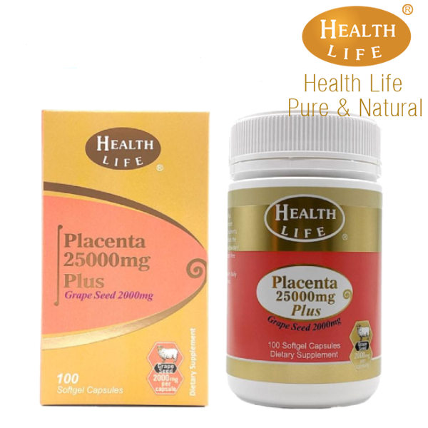 ヘルスライフ社のシーププラセンタ25000mgです。1カプセルに羊プラセンタが25,000mg相当配合されています。透明感やツヤを保ちたい、年齢による体調変化が気になる等、美容と健康のデイリーケアにおすすめのサプリメントです。高品質な羊プラセンタ100カプセル入り。さらに抗酸化効果のあるグレープシードエキスも配合されています。当店おすすめプラセンタです。