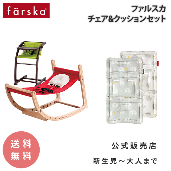 限定セット ファルスカ公式 スクロールチェア クッション コットン テーブル付 ロッキング バウンサー 木製 ハイチェア 限定色 farska