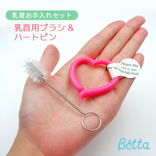 ベッタ 哺乳瓶 betta 専用 乳首お手入れセット 乳首用ブラシ 哺乳びん ハートピン 日本製 洗浄用品 洗浄ブラシ ベビー用品 便利グッズ