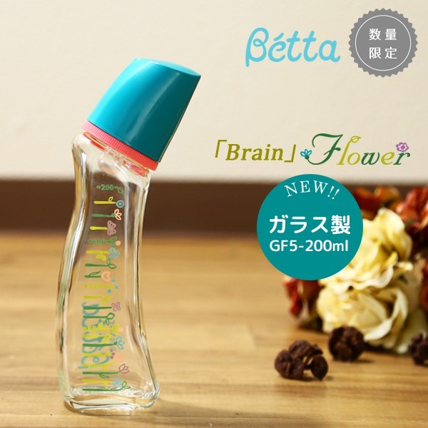 ベッタ 哺乳瓶 ガラス betta ブレイン GF5-200ml 200ml 耐熱ガラス フラワー クロスカット乳首 哺乳びん 可愛い ベビー