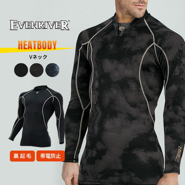 イーブンリバー 作業着 防寒着 EVENRIVER インナー ヒートボディ Vネック インナー アンダーシャツ GTH-16 防寒 アンダーウェア 保温 極厚 ストレッチ 裏起毛