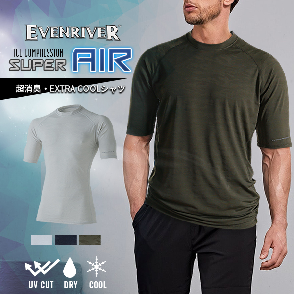 イーブンリバー 作業着 コンプレッション 半袖 軽量 接触冷感 吸汗速乾 アイスコンプレッション スーパーエアー UVカット EVENRIVER インナー 涼しい 作業服