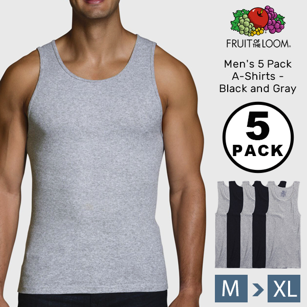 FRUIT OF THE LOOM メンズ 5パック A-シャツ ブラック & グレー