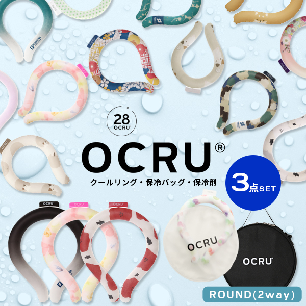 という思いを込めたブランド「OCRU」からクールリング1本、クールリング専用保冷バッグ&保冷剤の3点セットです。
