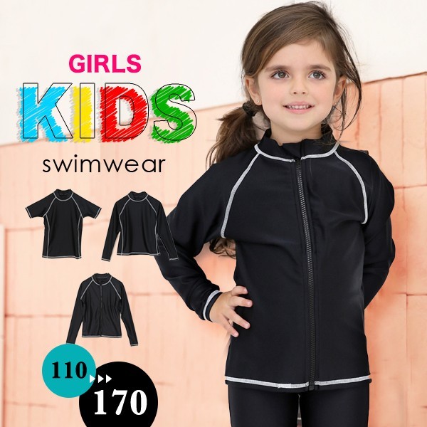 子供 キッズ 水着 女の子 半袖 長袖 ジップアップ トップス スクール ラッシュガード 水泳 スイミング UVカット 紫外線予防 ジュニア