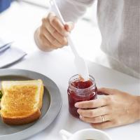 ビンの底やフチも楽々すくえる ヘラ形状 の スプーン 。