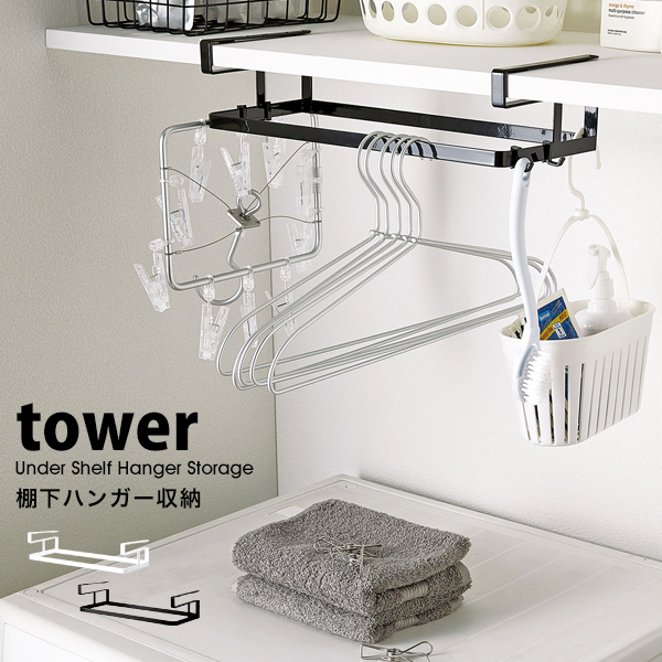 タワー 山崎実業 棚下 ハンガー 収納 tower ハンガー収納 棚下収納 吊り下げラック 洗濯機 ランドリー 収納 棚 ラック スチール 04308 04309
