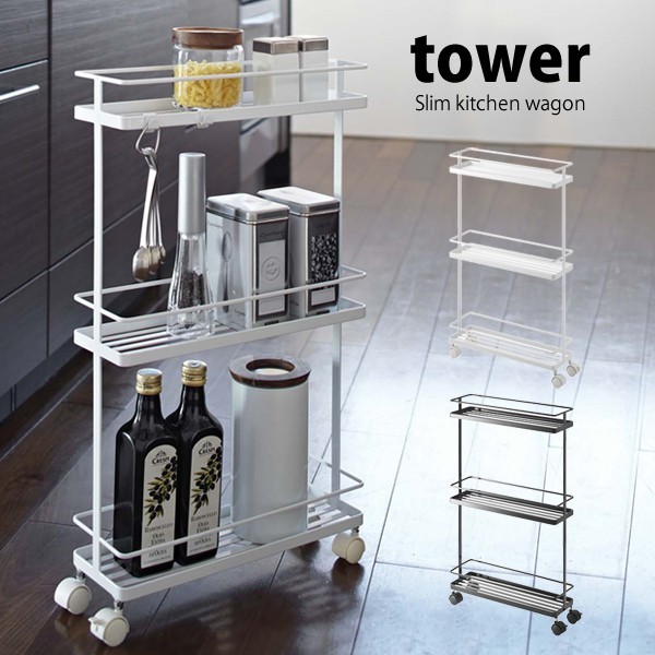 | 毎日を気持ち良く過ごすための極上インテリアを追求し続けるtower(タワー)より、 スリムキッチンワゴンのご紹介です。 隙間にスッキリ収まる12cmのスリムなワゴン! お掃除にも移動にも便利なキャスター付きです。 |