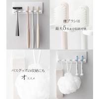歯ブラシを掛ける部分はフックとしても使えるので、替えの電動歯ブラシやスポンジなどのバス小物も収納可能。
