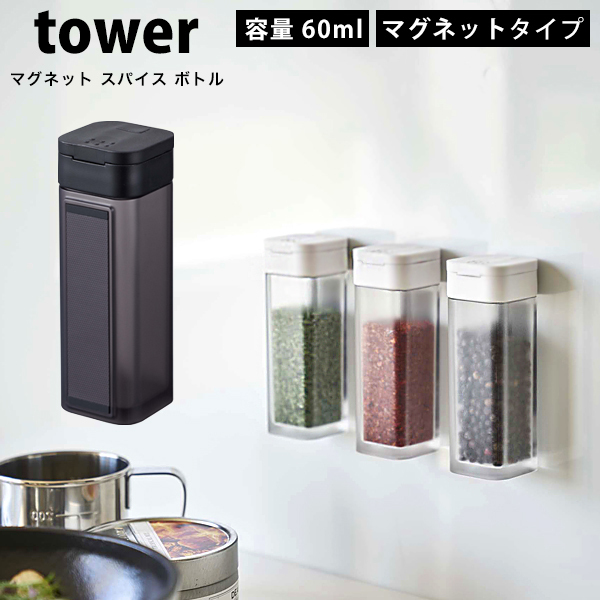 タワー 山崎実業 マグネット スパイスボトル tower 調味料入れ 調味料 収納 おしゃれ 砂糖 塩 調味料ストッカー ホワイト ブラック キッチン用品