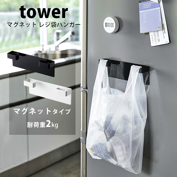 タワー 山崎実業 マグネット レジ袋ハンガー tower ゴミ箱 ポリ袋 ビニール袋 分別 レジ袋ホルダー ポリ袋ハンガー ホワイト ブラック 台所