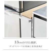 | 隙間空間を有効活用!「ハンドル付きスリムワゴン」のご紹介です。 ハンドルとキャスター付きで出し入れ楽々♪ 収納棚はそれぞれ高さが違う3段仕様で「小さい」キッチン小物から「大きい」ペットボトル等も収納可能。 洗剤や掃除用品等のランドリー用ワゴンとしてもおすすめ♪ |