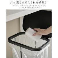 | シンプル&スリムなデザインのゴミ袋ホルダー。 蓋を開けた時の高さが抑えられる横開きタイプなので、棚下にも設置しやすくて便利! 蓋とフレームだけのシンプルな構造なので、ゴミ箱にニオイが残る心配もありません。 |