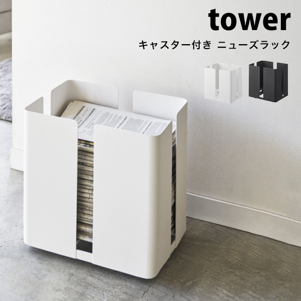 タワー 山崎実業 新聞ストッカー キャスター付き ニューズラック tower 新聞入れ 雑誌 ストッカー マガジンラック 白 黒 ホワイト ブラック