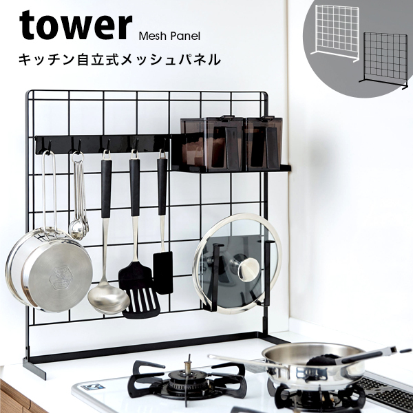 タワー 山崎実業 キッチン用品 便利 キッチン 自立式 メッシュ パネル tower 収納 棚 おしゃれ フック 引っ掛け 整理 スタンド 白 黒 ホワイト ブラック
