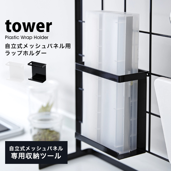 タワー 山崎実業 キッチン用品 便利 キッチン 自立式 メッシュパネル用 ラップ ホルダー tower 収納 おしゃれ アルミホイル ケース 白 黒 ホワイト ブラック