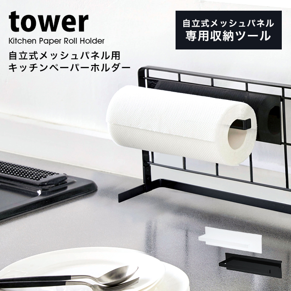タワー 山崎実業 キッチン用品 便利 キッチン 自立式 メッシュパネル用 キッチン ペーパー ホルダー tower 収納 おしゃれ 収納 白 黒 ホワイト ブラック
