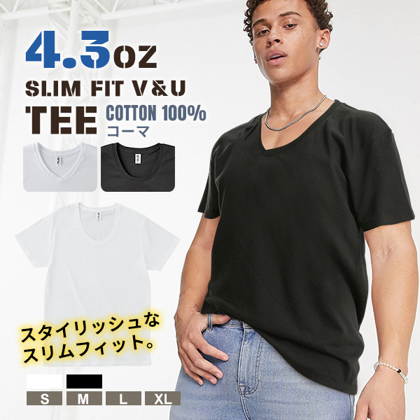 4.3oz 定番 スタンダード 半袖シャツ Vネック Uネック