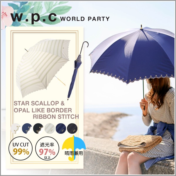 wpc ワールドパーティ 遮光 セーラー UVカット 100% UPF 50+ 手動開閉 日傘 晴雨兼用 遮光 遮熱 撥水 スマート レディース 女性