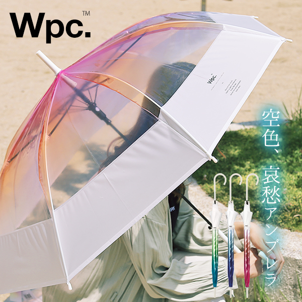 wpc ビニール傘 ジャンプ傘 雨傘 長傘 グラデーション 60cm 透明 ロング クリア かわいい おしゃれ レディース インスタ映え